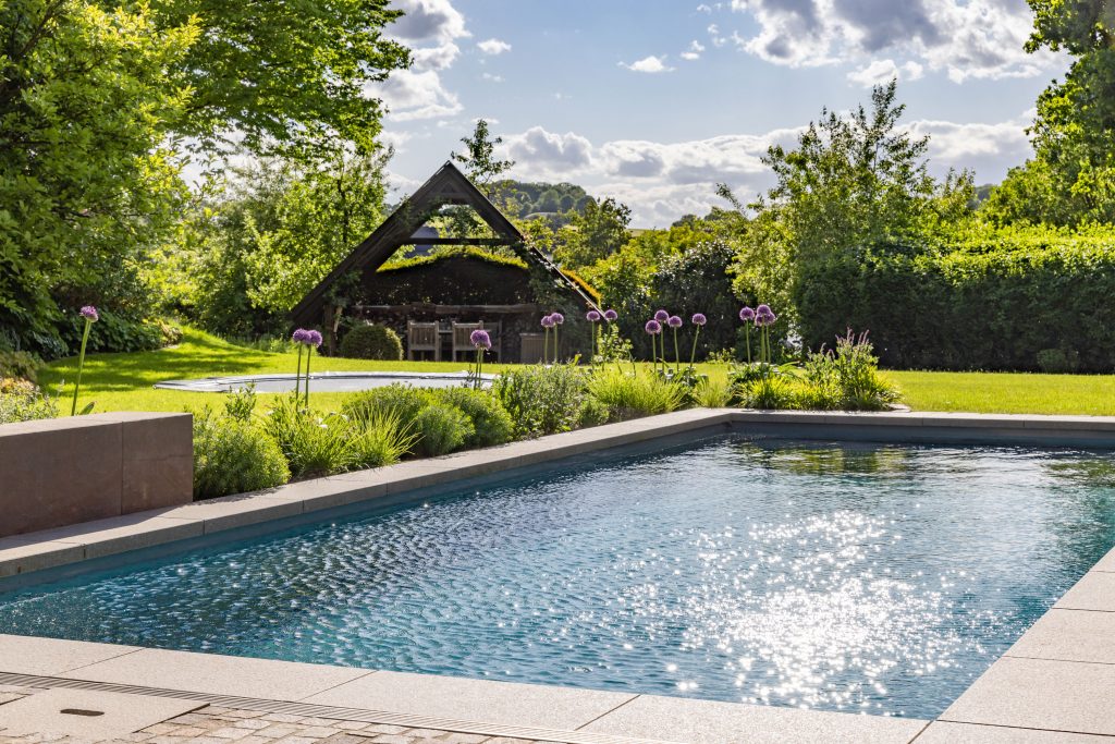 Klute Gärtner von Eden equipped this private garden in Sauerland with a biopool, with the aim of transforming the garden area close to the house into a wellness garden for a family with three children.