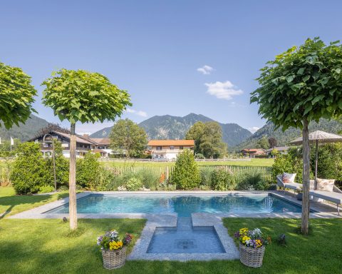 In a garden in North Rhine-Westphalia, pool specialist Sankurt created an exclusive wellness retreat that combines high-quality materials, modern water features, and functional design. At its center is a prefabricated pool from RivieraPool’s Modena collection, featuring an integrated wet lounge that invites relaxation in shallow water.