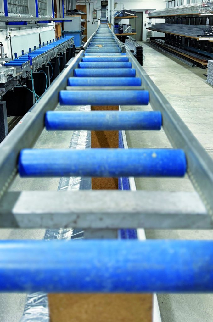 In der ersten Produktionsphase werden die notwendigen eingebauten Komponenten hergestellt, die die Grundlage des Systems bilden. Dies folgt die Herstellung der Welle, der Antriebseinheit und des Rollladenvorhangs. Je nach Systemtyp und Installationsvariante werden auch zusätzliche Erweiterungen und Zubehörteile wie Führungsschienen, Verkleidungen oder Pendelschlitten hergestellt.