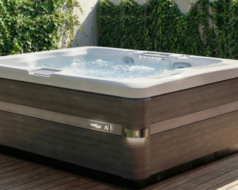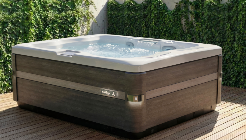 The mini pool is operated at a higher water temperature and features a surrounding seating bench, inviting people to gather comfortably. Two integrated massage jets even provide a powerful massage for the lower back.
