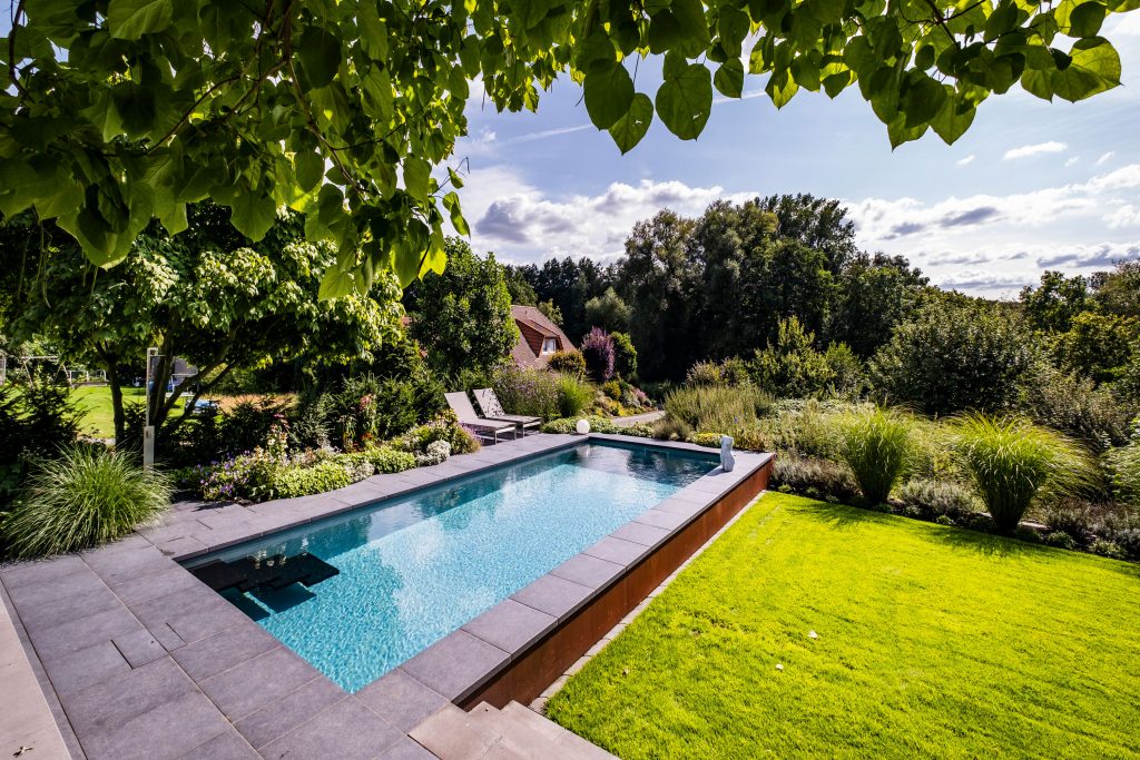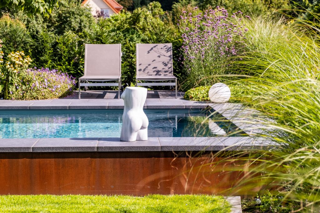 The different height levels of the garden add character and are accentuated by a decorative corten steel cladding.