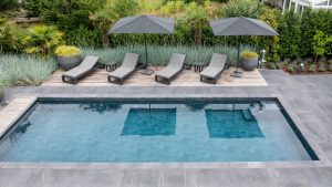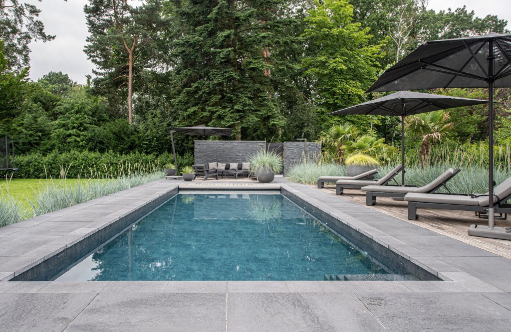 This stylish pool landscape, defined by a sense of calm and tranquility, was created in a garden in Cologne. Planning, design, and construction of both the pool and the entire garden were carried out by Schenker Garten und Landschaftsbau.