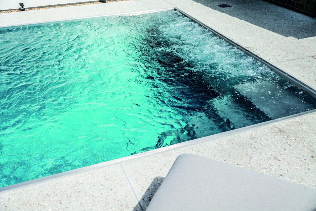 Directly beside the steps, a tubular bench fills the remaining 2.7 meters of the pool’s width. Whether cooling off or relaxing after endurance training, the bench can provide soothing heated air bubbles thanks to controllable blower technology.